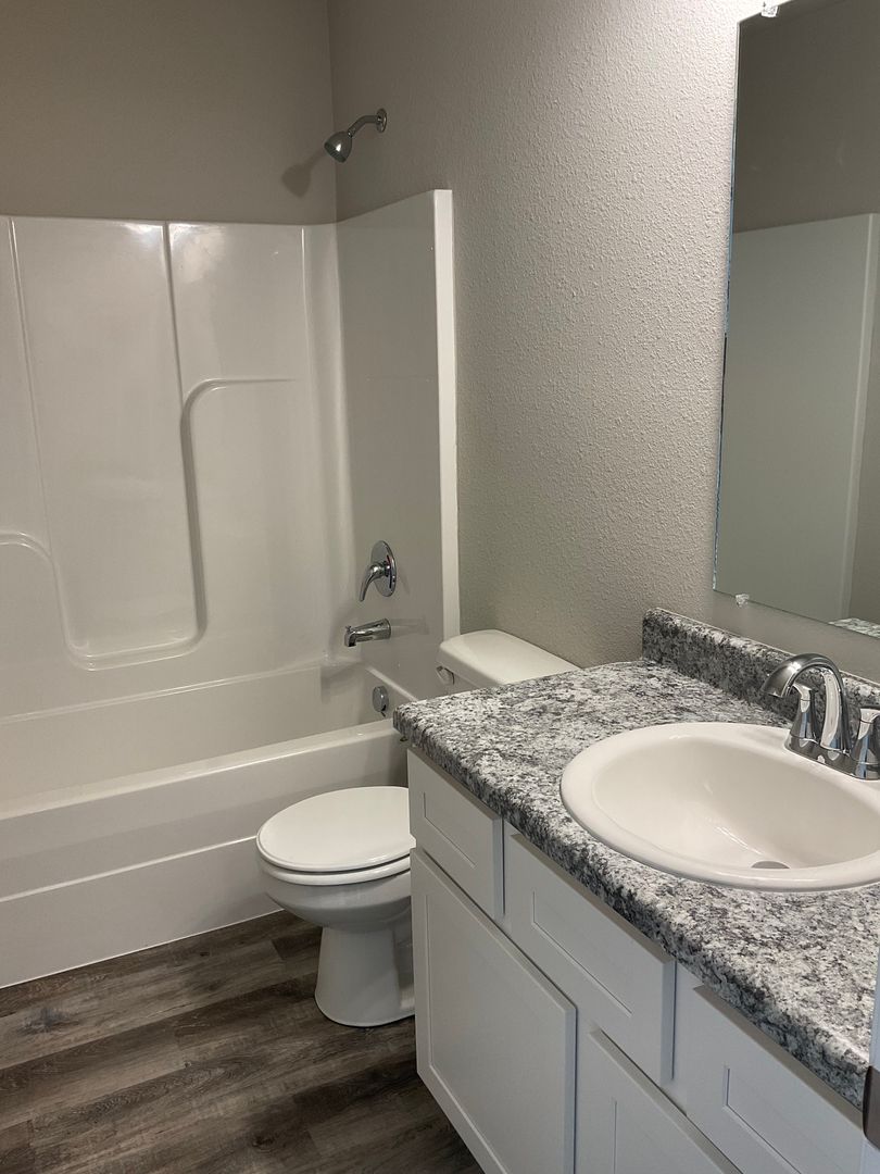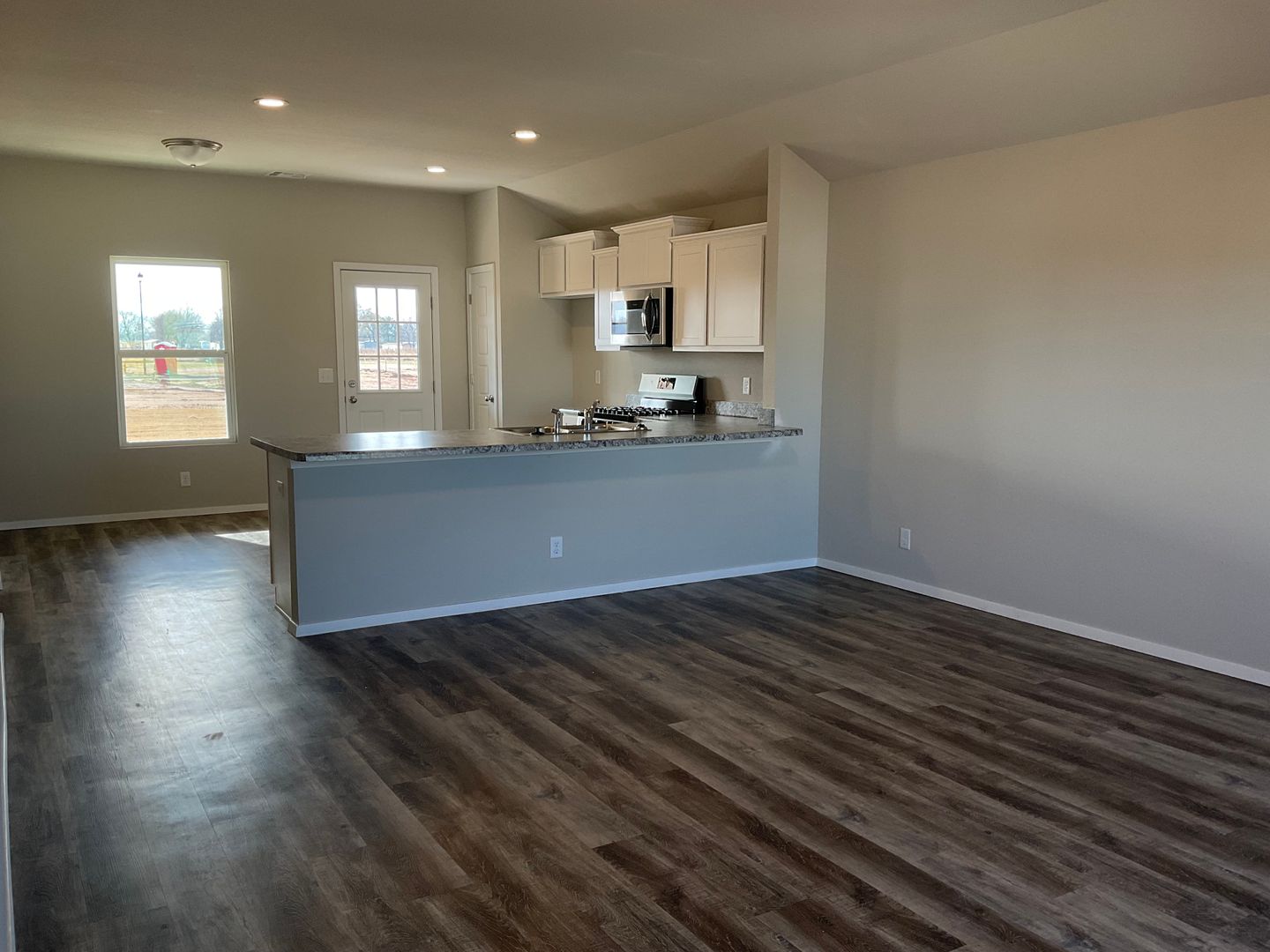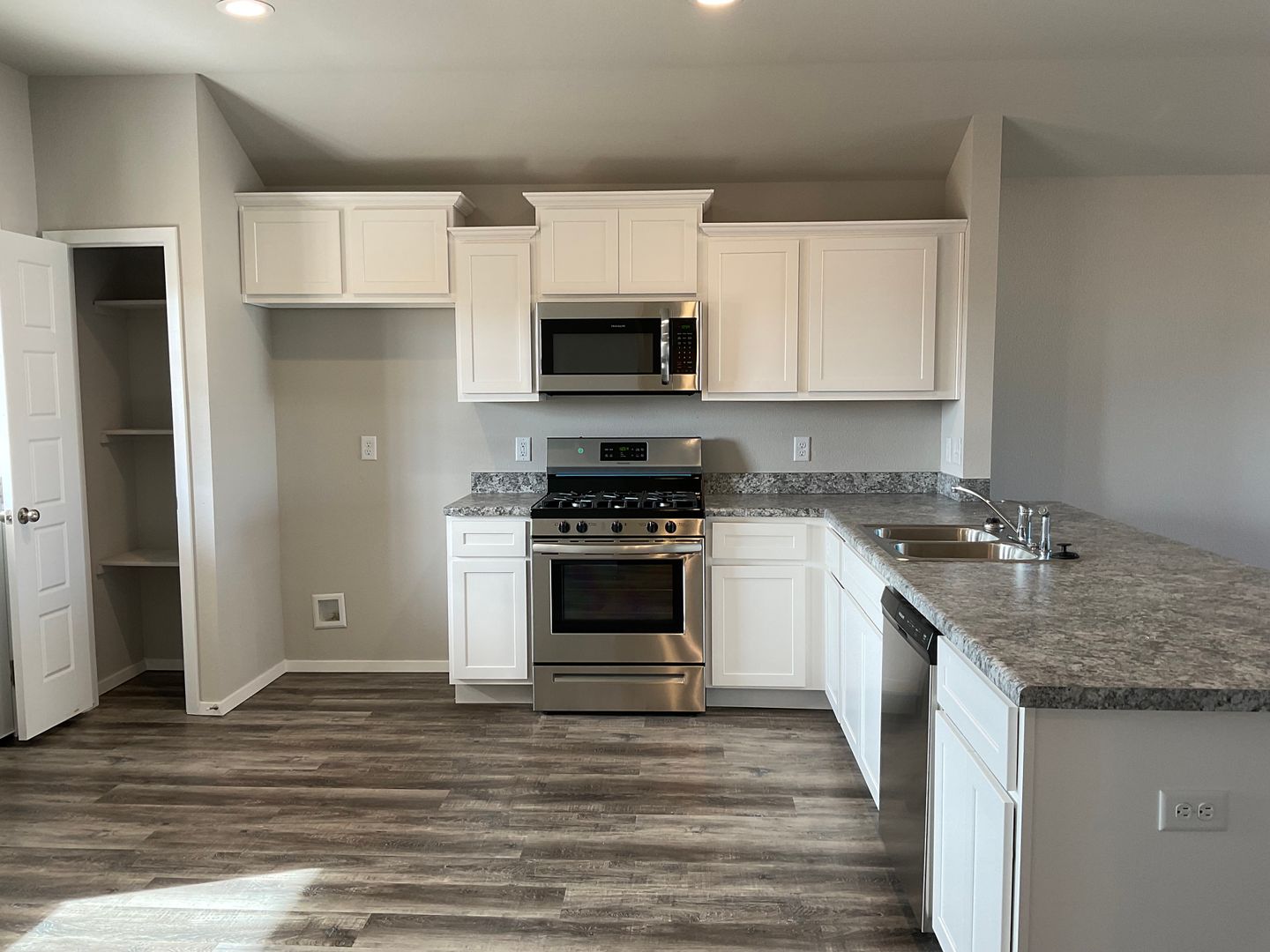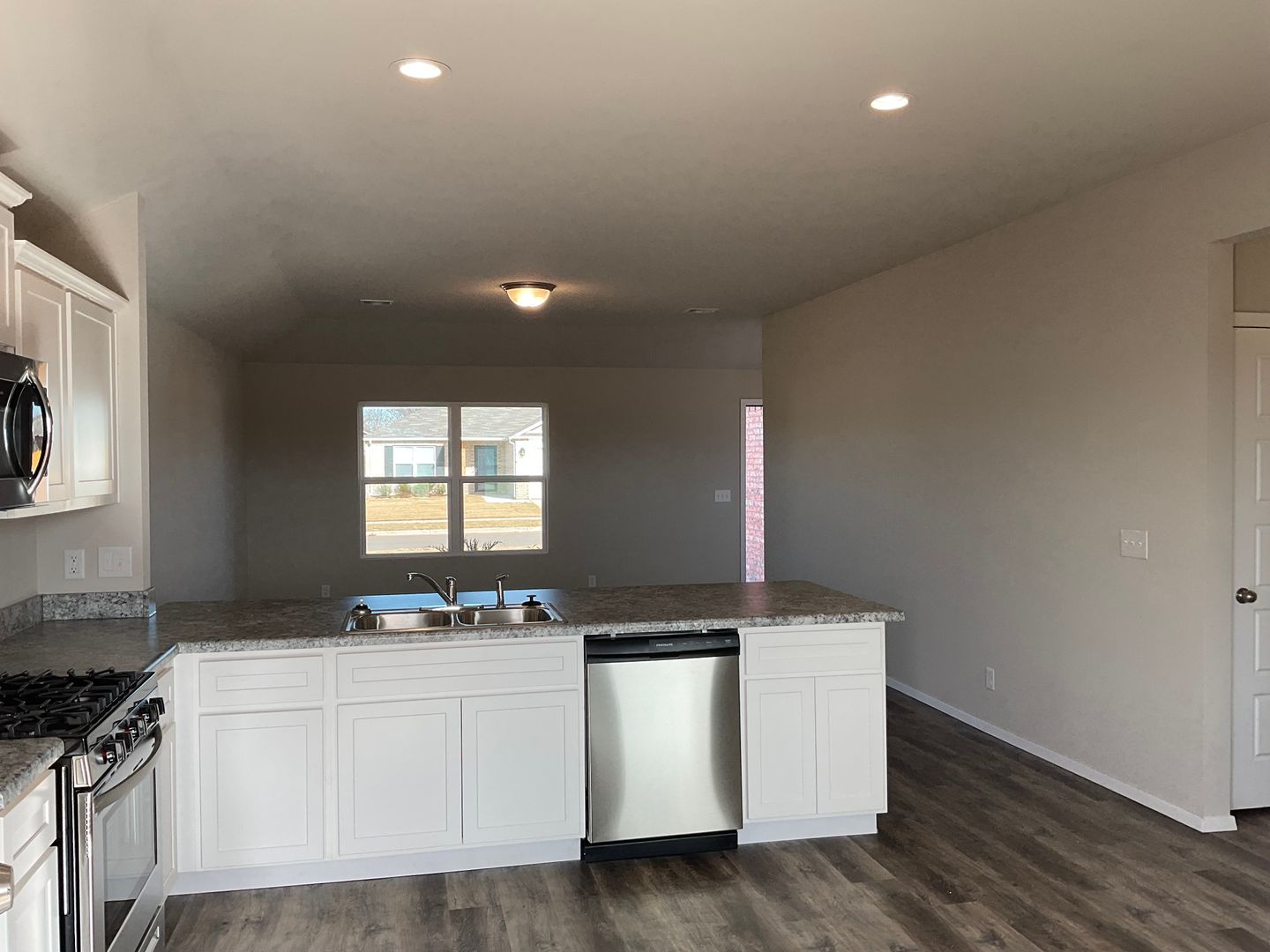 2021 Built...3 bedrooms, 2 Baths, 2 car Garage with opener...Bedrooms are carpeted...Living-Kitchen-Dining Open Plan with wood-look vinyl plank flooring....Includes Stainless Steel gas range, Micro-hood, Dishwasher, Disposal....Patio door to back yard...Laundry room will take elect dryer...Central gas H & A
