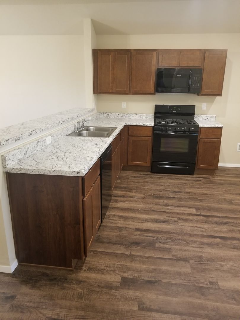 Stonebrook subdivision...Central Coweta...3 Bedrooms, 2 Baths, 2 car Garage with Opener...Wood-look vinyl flooring throughout...2" blinds throughout...Open plan Living, Kitchen, Dining...Living room with ceiling fan...Kitchen has Formica-type counters and includes gas range, micro-hood, dishwasher, disposal...Dining area has door to covered patio...Master bedroom has walk-in closet, ceiling fan, private bath with 2 lavatories...Laundry closet will take elect dryer...Central H & A, Vinyl windows...Covered Patio, Privacy fenced back yard...Coweta schools, Central Elementary.