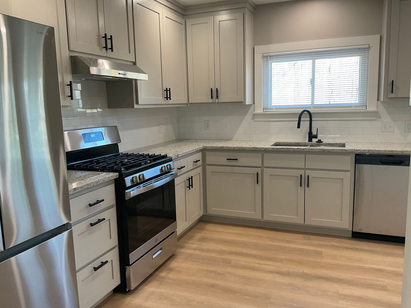 Beautifully Redone 2 Story, 2 Bedroom (1 Upstairs & 1 Downstairs), 1 Bath Home...Wood Floors throughout...New Windows, Fresh Paint...Living Room with Lots of Light...Kitchen has Granite Counters and includes: Refrigerator, Range/Oven, Dishwasher and Garbage Disposal...Dining Area...Laundry off of Kitchen/Dining...Driveway Parking...Approx. 1491 Sq. Ft...Mature Trees