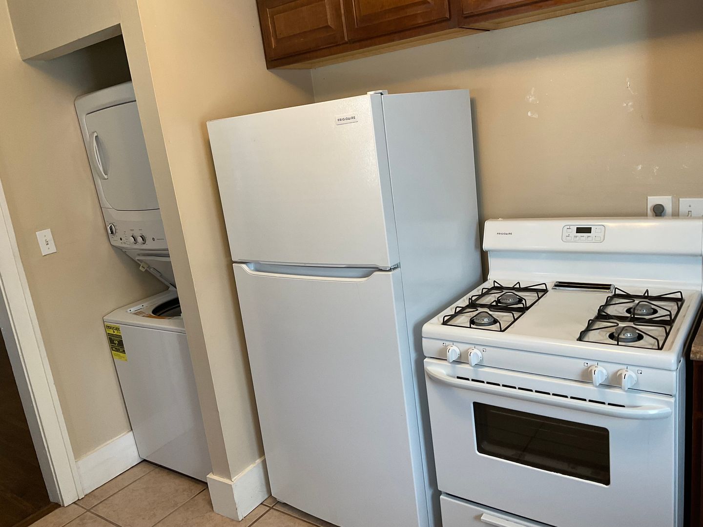Midtown Area...3 Bedrooms, 1 Bath, Off-Street Parking...Refinished Wood Floors...Entry Hall...Faux Fireplace and Built-In Bookcases in Living Room...Dining Room...Kitchen has ceramic tile floor and Updated Cabinets, includes: Refrigerator, Gas Range and Dishwasher...Laundry Closet with Stack Washer and Dryer...CH&A...Small Basement... Off-Street Parking...Fenced Yard...Small dogs & cats only, no large dogs.