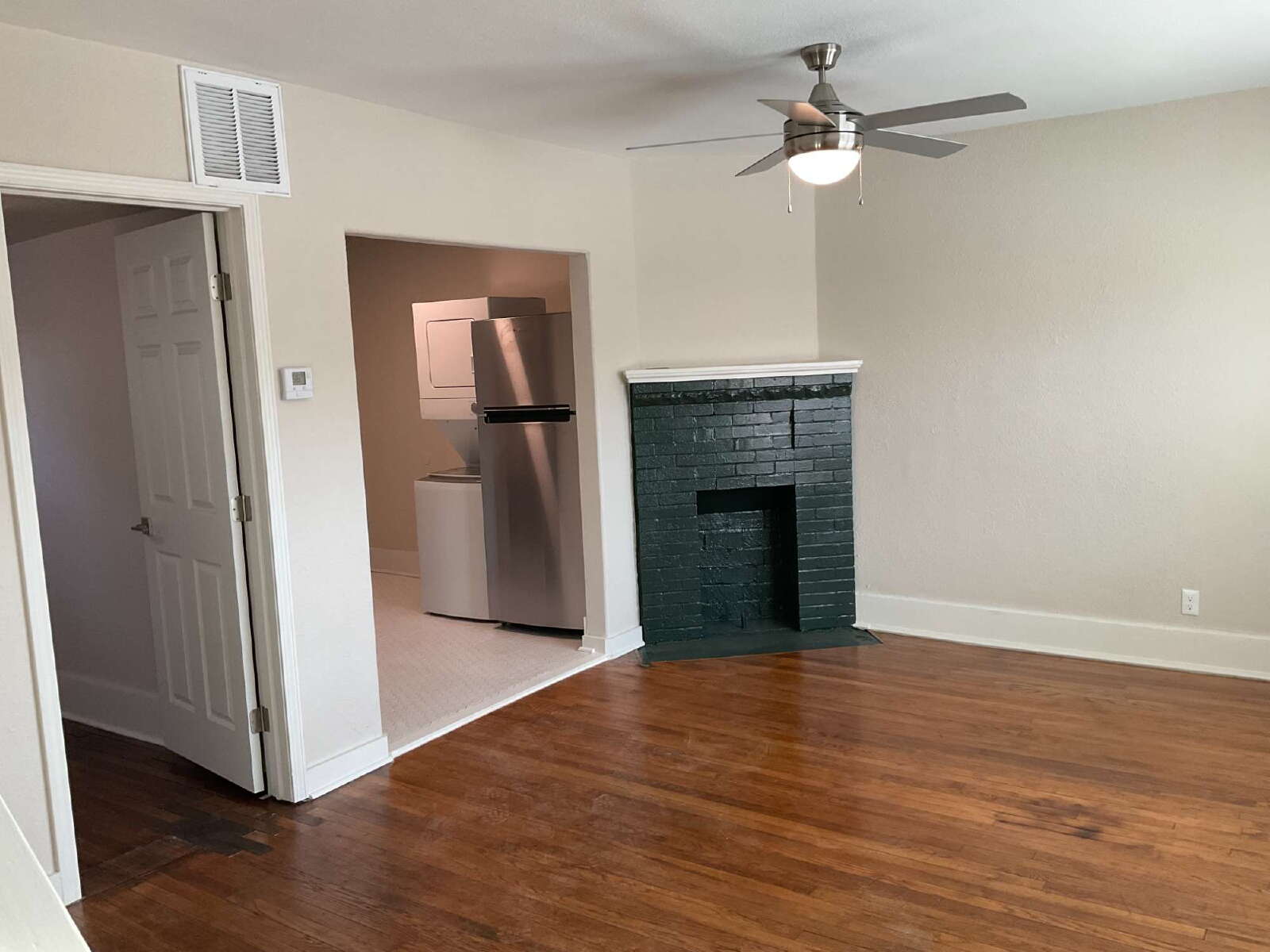 2 Story Duplex...2 Bedroom, 1 Bath...Living Room has ceiling fan...Kitchen includes: Range/Oven, Refrigerator and Stack Washer/Dryer...Bathroom has Walk-In Shower...Wood Flooring throughout except Kitchen and Bath have tile...Water is Paid...Approx 722 Sq. Ft...Driveway Parking